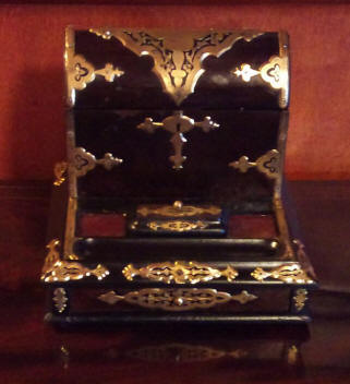 | This is a desk top writing accessory box..