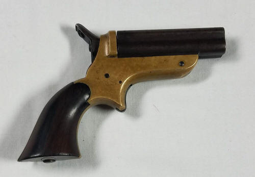THE BARREL SLIDES FORWARD FOR LOADING. HALF COCK THE HAMMER AND PUSH THE BUTTON ON THE LEFT SIDE